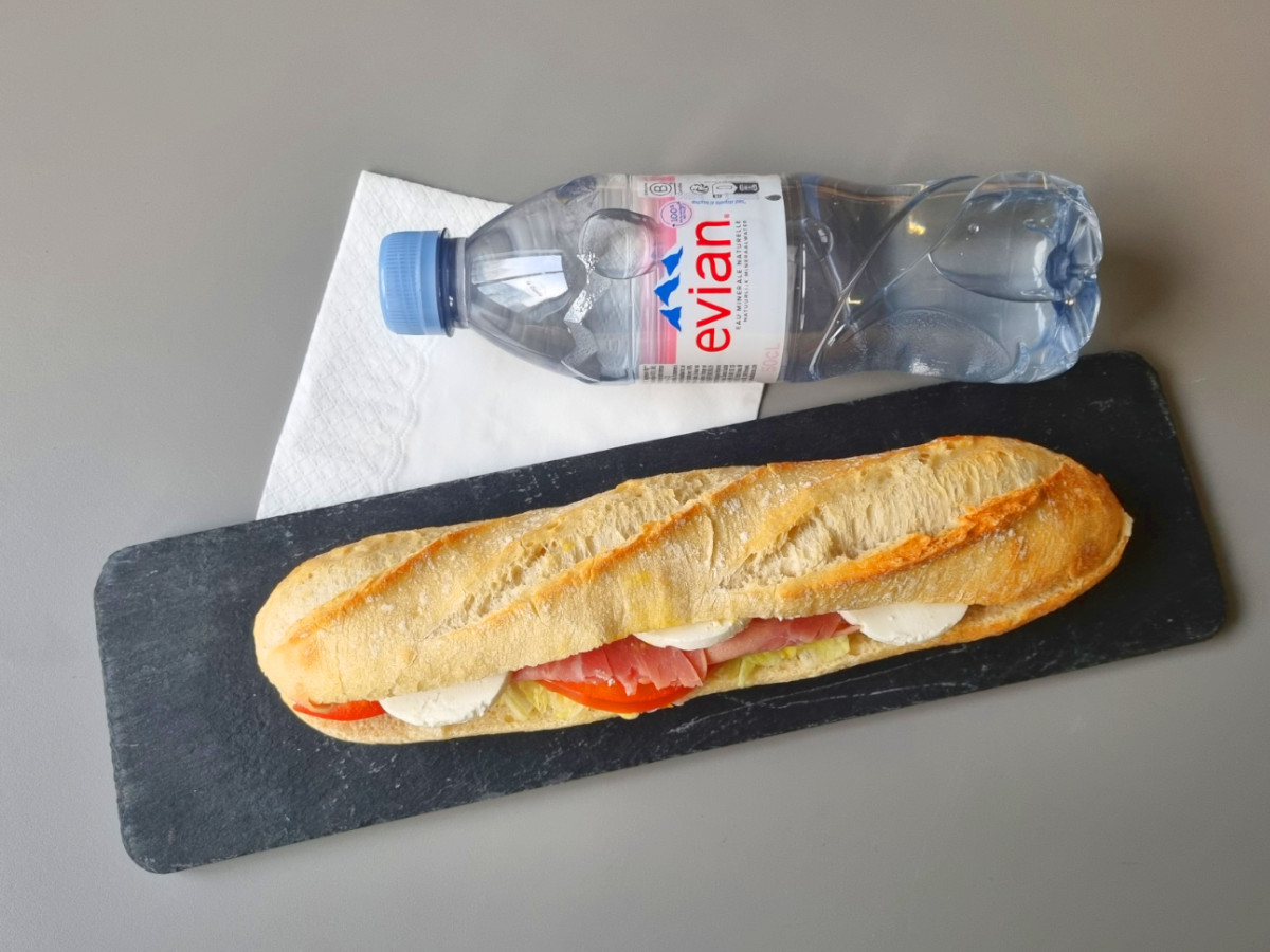 Pain baguette, thon, oeuf, salade, tomate, mayonnaise